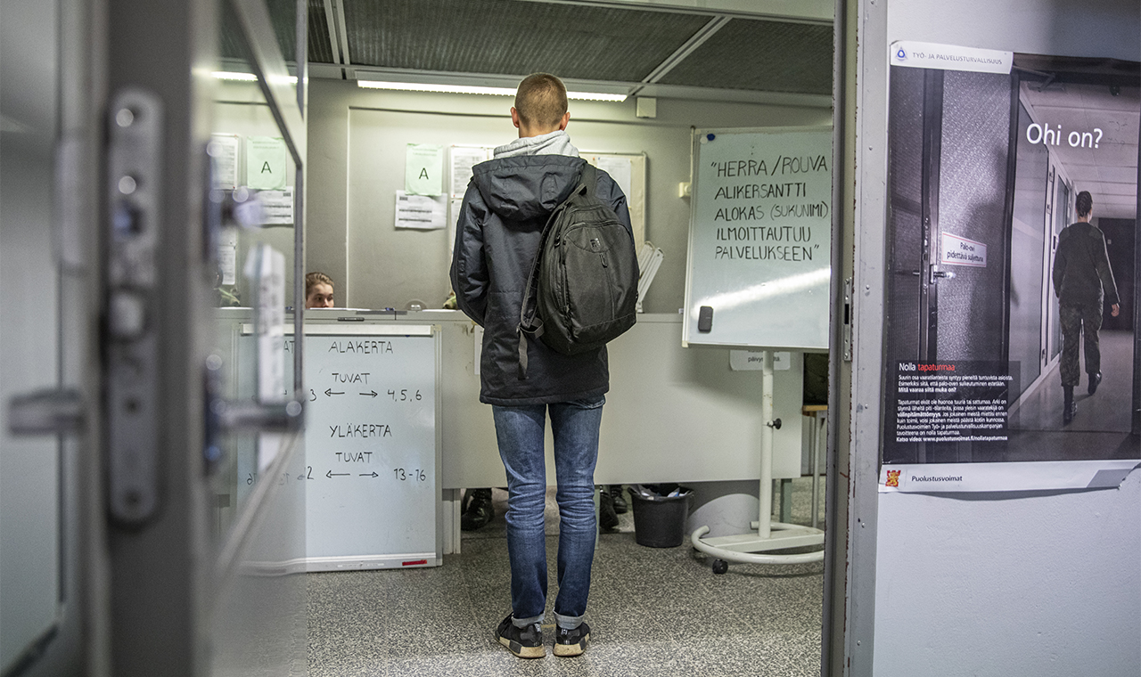 Espoon Matinkylän bussiterminaalissa laiturin 10 lähettyvillä norkoilee useita ympärilleen pälyileviä nuoria täyteen pakatut reput selässään. Suurin osa näyttää valinneen vuoden alkajaisiksi hieman lyhyemmän hiustyylin. Kello lähestyy puoltapäivää, mutta bussin lähtöön on vielä sen verran aikaa, että suuntaan maihinnousukenkäni laiturin vieressä olevaan kahvilaan nauttimaan Cafe Americanon. Kun saavun takaisin laiturille, on hermostuneen joukon koko vähintään tuplaantunut.