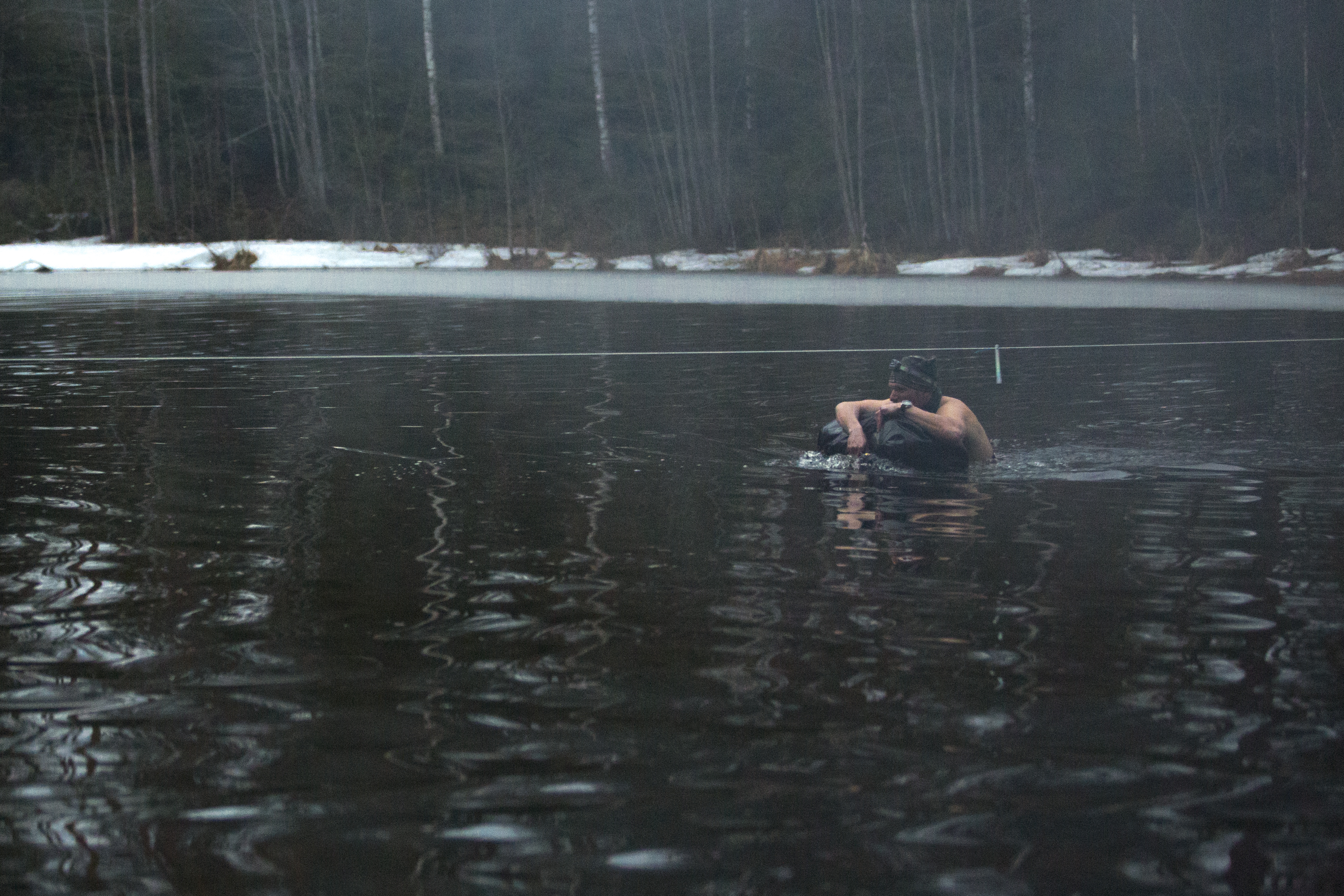 Maastomarssin yksi rasteista oli vesistön ylitys.