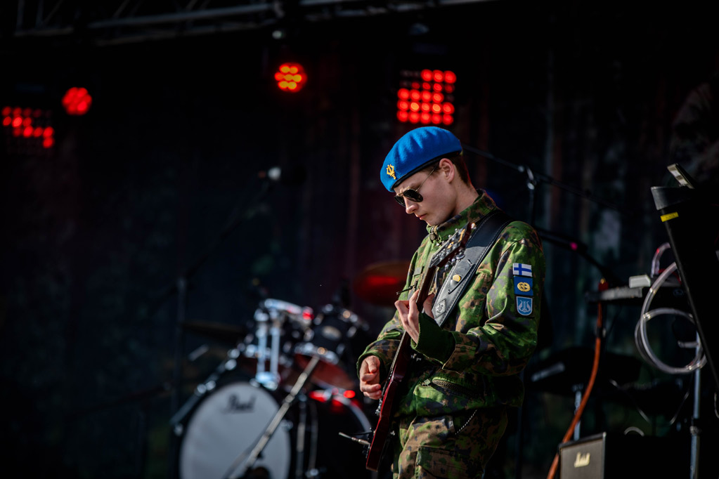 – Tämä oli ihan positiivinen yllätys, sillä tämä oli uuden miehistön ensimmäinen varsinainen keikka. Oli mukava päästä soittamaan täällä, koska siviilikeikat on peruttu, kertoo soittokunnan basisti Paavo Vuolteenaho.