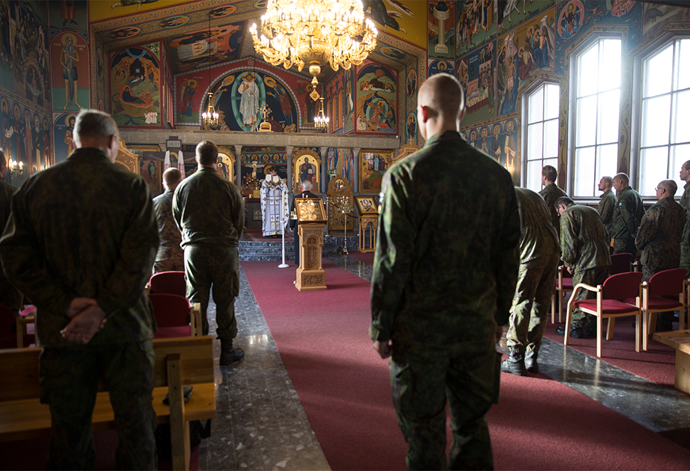 Lehdistölle avoimen harjoituspäivän aamu alkoi jumalanpalveluksella Kajaanin Kristuksen kirkastumisen kirkossa, jossa liturgian toimitti ortodoksisen kirkon sotilaspastori Mikko Sidoroff. Hiljentymisen ja pohdiskelun lisäksi jumalanpalvelus antoi mahdollisuuden ihailla historiallisesti merkittävää ikonitaidetta.