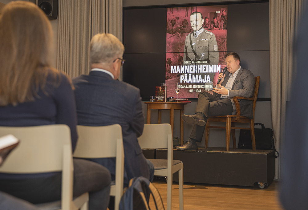 – Isossa kuvassa oli hämmästyttävää havaita se, kuinka valmis päämaja oli ennen talvisotaa. Koko sodanjohtoesikunnan toiminta mahdollisen tulevan sodan osalta oli suunniteltu. Tiedossa oli organisaation rakenne, henkilösijoitukset, päämajan sijainti sekä aikataulu, kuinka se mahdollisesti siirrettäisiin Helsingistä Mikkeliin, Karjalainen avasi tuntemuksiaan tutkimustyön osalta kirjan julkistamistilaisuudessa.