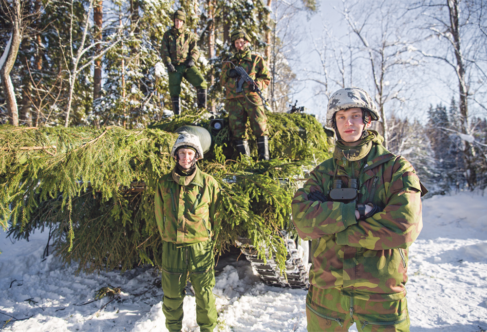 Upseerioppilas Kasper Simolin toimii oman vaununsa vaununjohtajana. Leopard 2A6-panssarivaunu on naamioitu näkyvyyden ja lämpöjäljen pienentämiseksi.