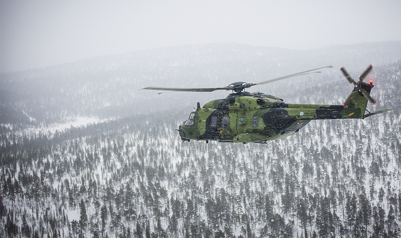 Pohjoisen Suomen silmänkantamattomiin jatkuvissa metsämaisemissa on jotain runollista. Auringonvaloa heijastavat monikymmensenttiset lumikerrokset hautaavat kasvillisuuden alleen. Talven pysähtyneisyyden luoman hiljaisuuden rikkovat NH90-helikopterin roottorit, joiden pöllyttämä lumi peittää näkökentän. Helikopterin vieressä seisoessa tunnelma on kuin pienen hurrikaanin keskellä. Cold Blade 2016 -helikopteritoimintaharjoitus on täydessä käynnissä.