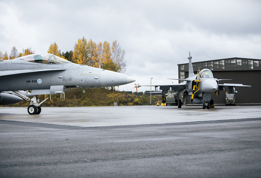 Ruska 17 - harjoituksessa ruotsalaiskoneet olivat ensimmäistä kertaa harjoittelemassa Suomen puolustamista samaan tapaan kuin suomalaiskoneet Ruotsin puolustamista Aurora 17 -harjoituksessa muutama viikko sitten.